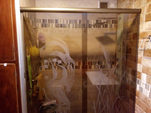 Este arenado muchas veces "viste" la mampara, al acompañar un diseño de guardas, o franjas ya pre diseñadas por nosotros o uno suministrado por el cliente.