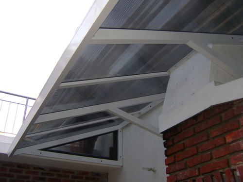 Este tipo de techos consiste en una estructura de aluminio en donde se apoya una placa de policarbonato alveolar (pequeñas celdas longitudinales) el cual cuenta con filtro ultra-violeta y cuyas celdas sirven como aislante térmico.